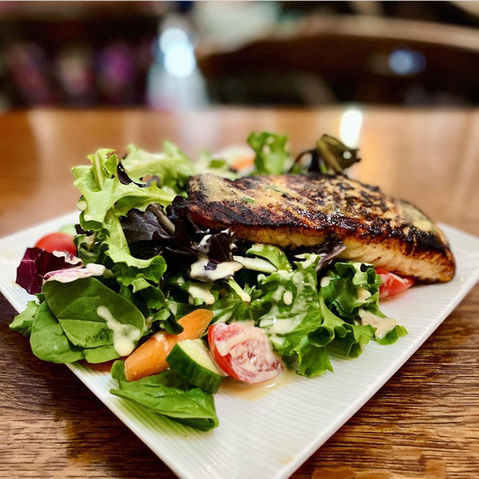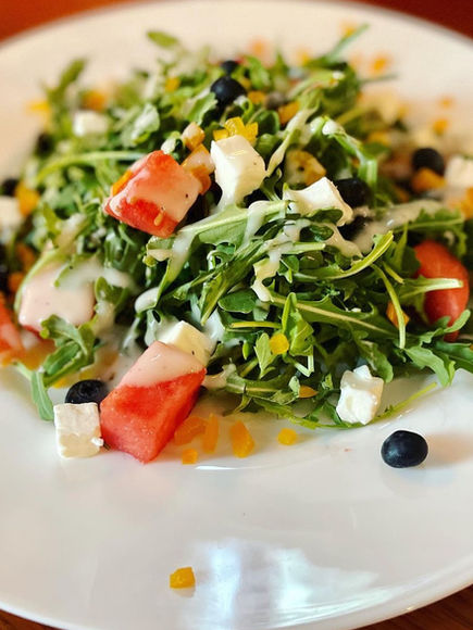 Tomatoes, cucumbers, julienne carrots, garlic croutons, choice of dressing